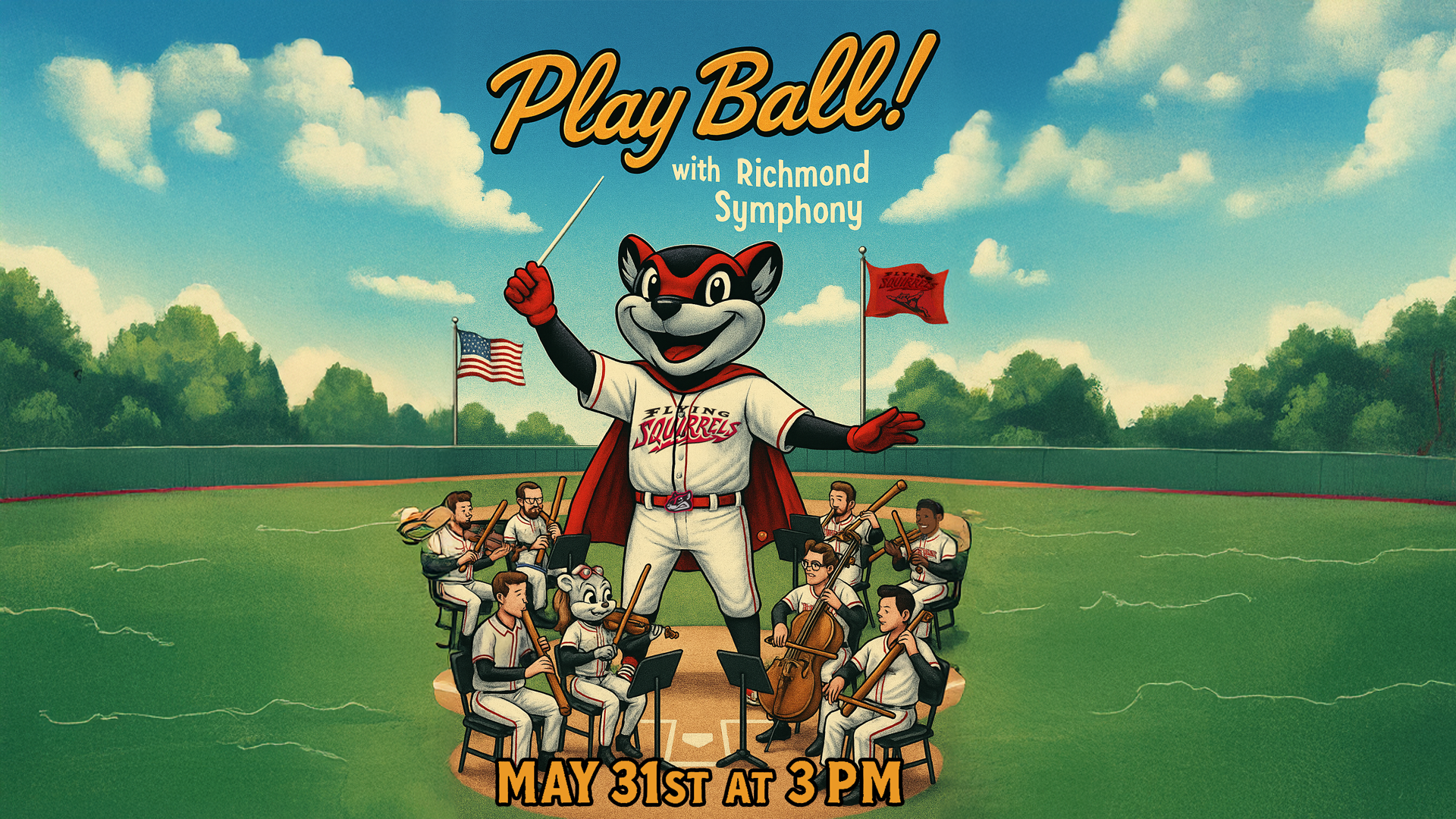 PlayBall! at Richmond Symphony May 31st at 3pm featuring an appearance by Nutzy and Flying Squirrels Stadium announcer! Grab your peanuts and cracker jack for some classic tunes performed live by your Richmond Symphony!
