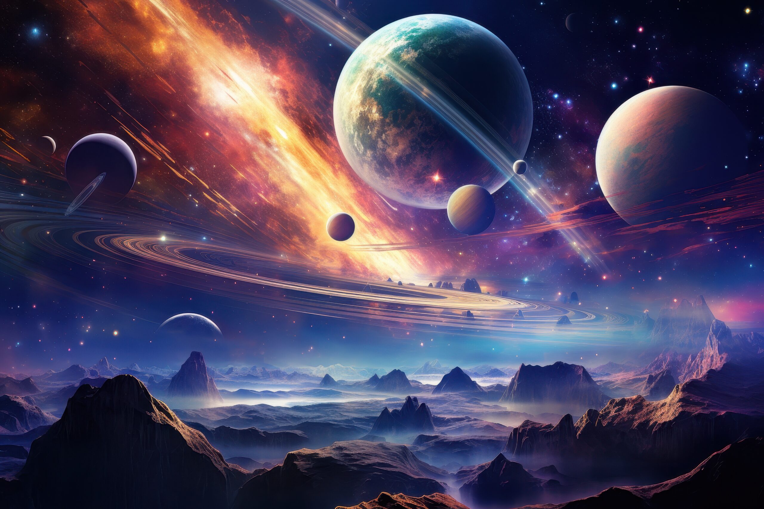 Celestial exploration cosmic planets outer space digital art sci-fi vast view